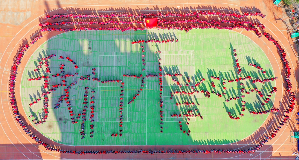 在外小的操場(chǎng)上,學(xué)生手持黨旗,排出“我們開(kāi)學(xué)啦”字形,放聲歌唱《沒(méi)有共產(chǎn)黨就沒(méi)有新中國(guó)》。在開(kāi)學(xué)第一天,以特別的方式向祖國(guó)、向黨敬禮,迎接新學(xué)期!