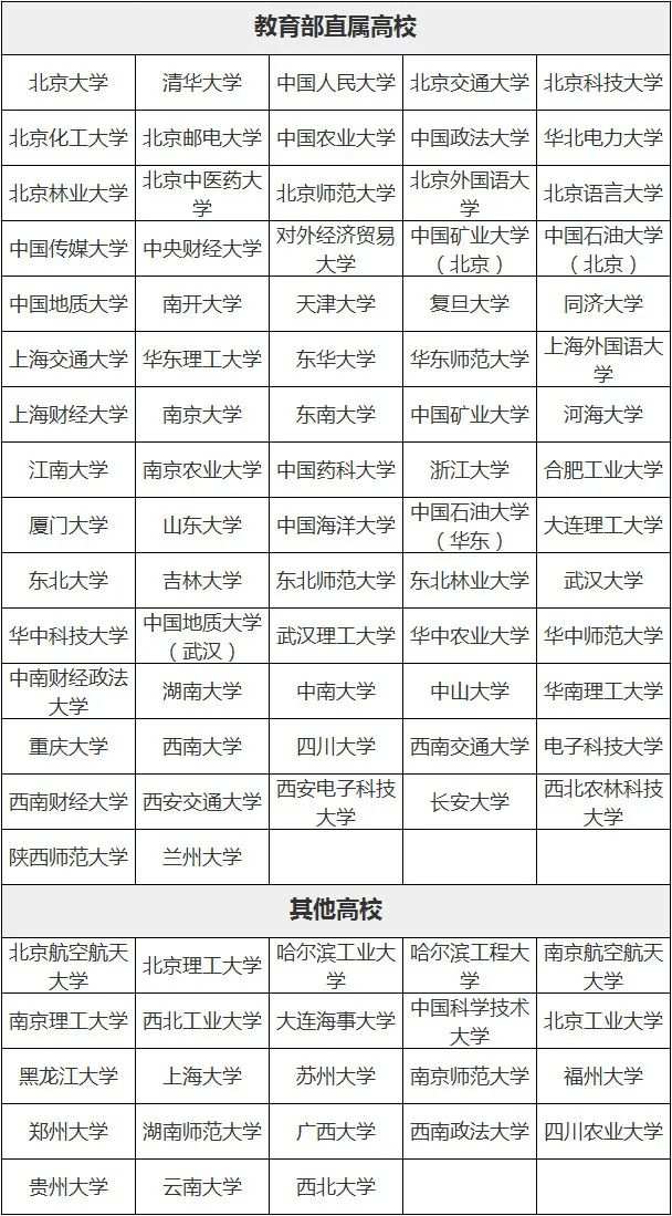 2021年高校專項計劃高校名單
