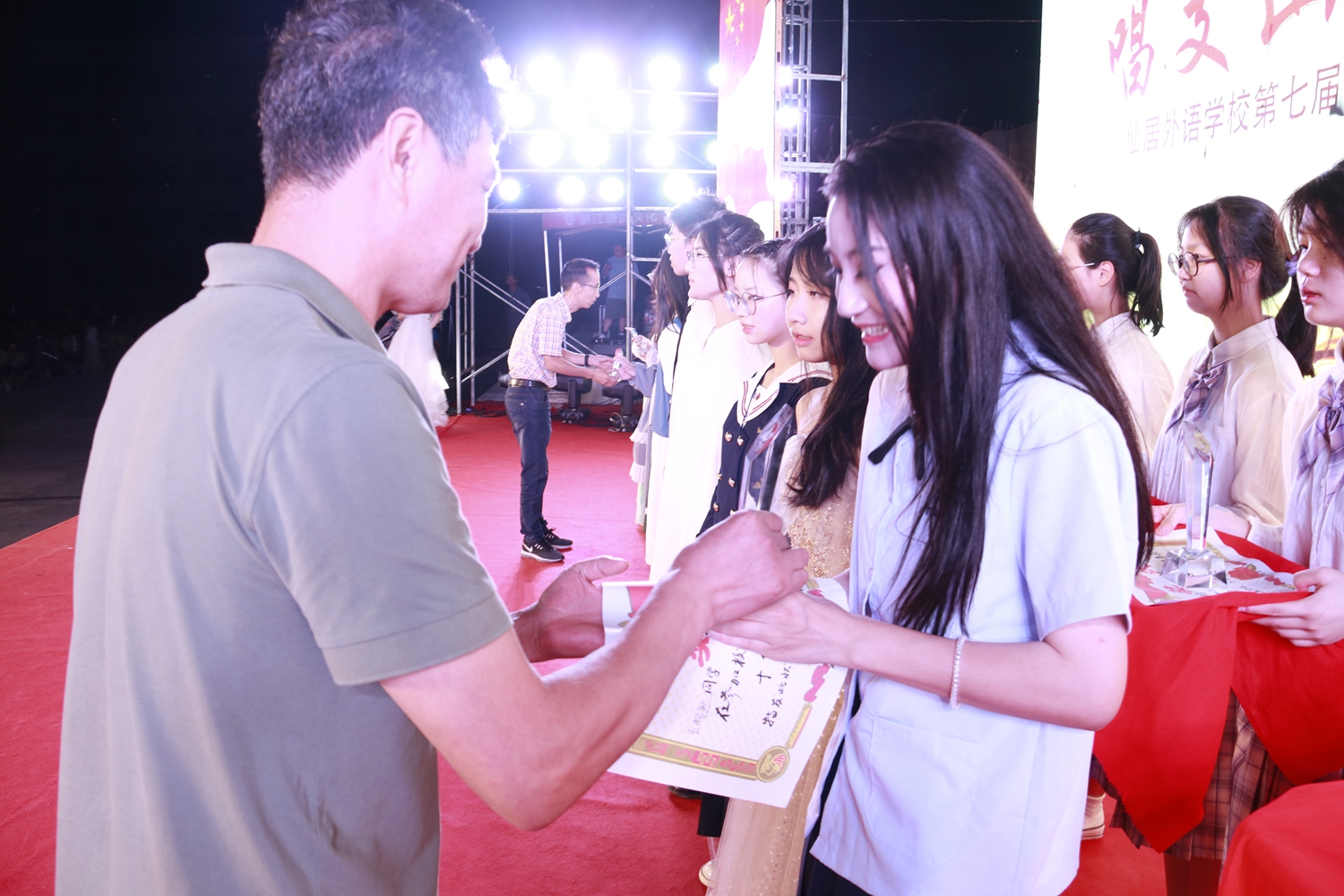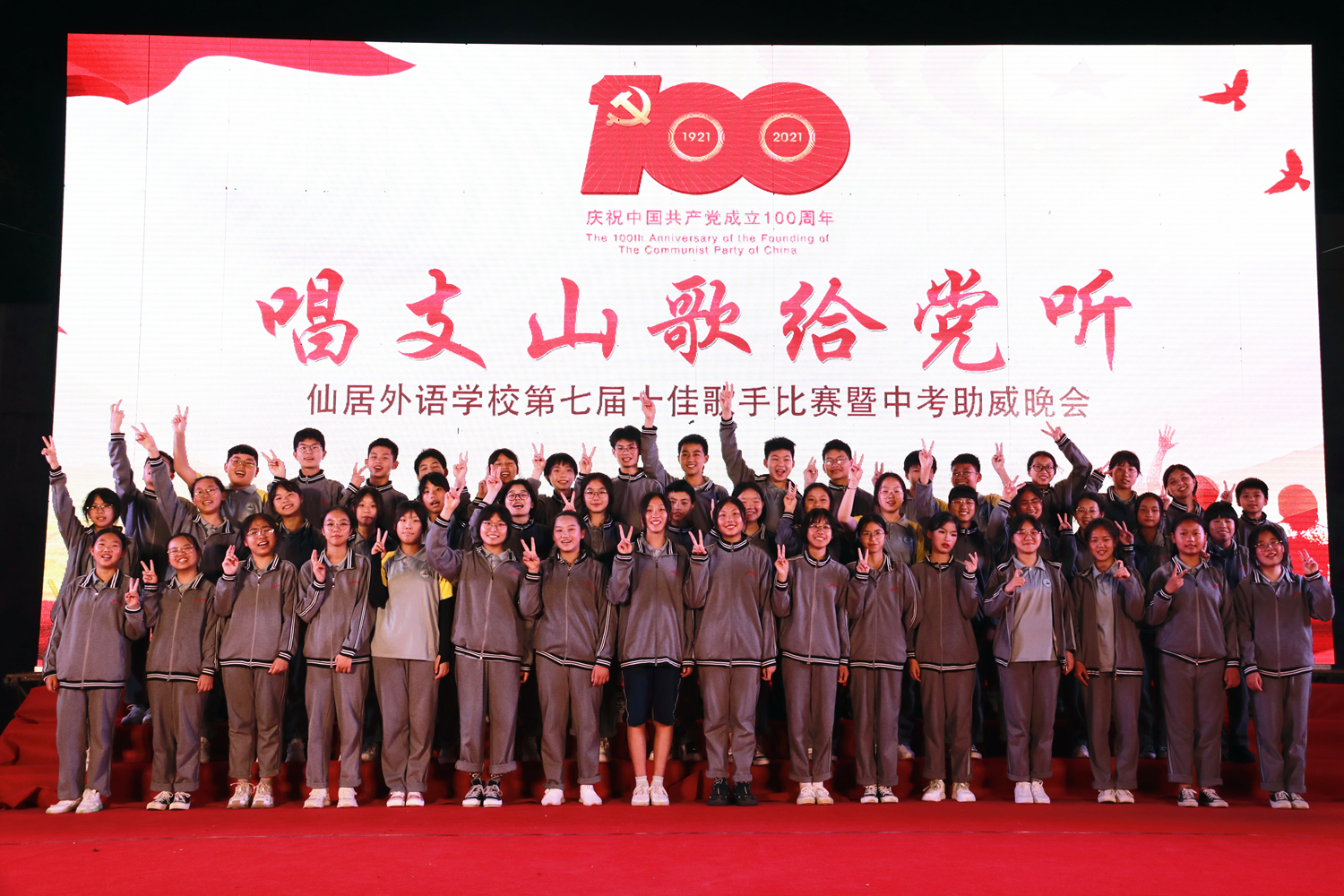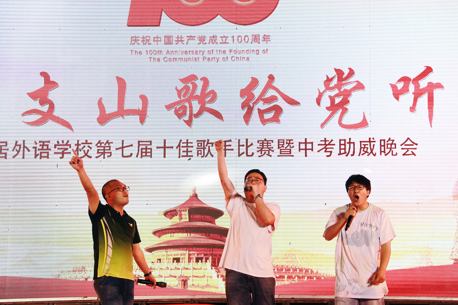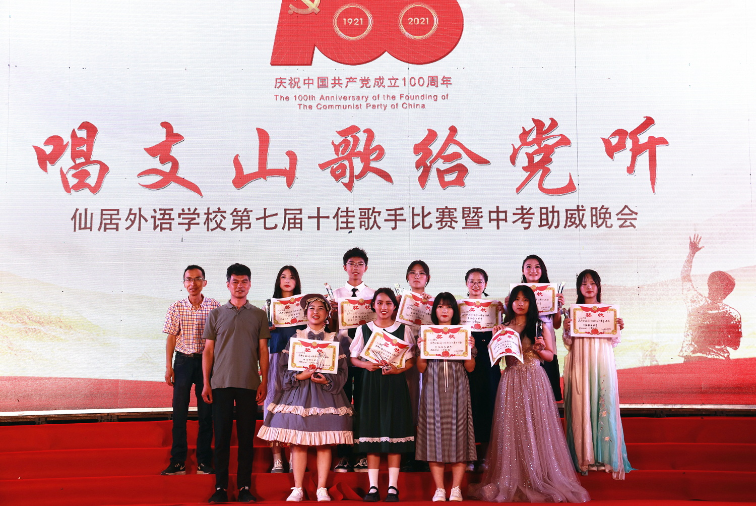 仙外校園網(wǎng)訊(新語(yǔ)社等) 歌聲詮釋熱愛(ài),夢(mèng)想閃耀征程。6月7日晚,我校初中部隆重舉辦“第七屆校園十佳歌手大賽暨中考助威晚會(huì)”,為師生們帶來(lái)了一場(chǎng)精彩的視聽(tīng)盛宴。周升豪書(shū)記和校領(lǐng)導(dǎo)出席大會(huì),親自為十佳歌手頒發(fā)榮耀獎(jiǎng)杯,共同見(jiàn)證了這一高光時(shí)刻。各年級(jí)師生輪流登場(chǎng)為即將中考的初三學(xué)子中考助威,祝福他們奔向人生燦爛的前程。