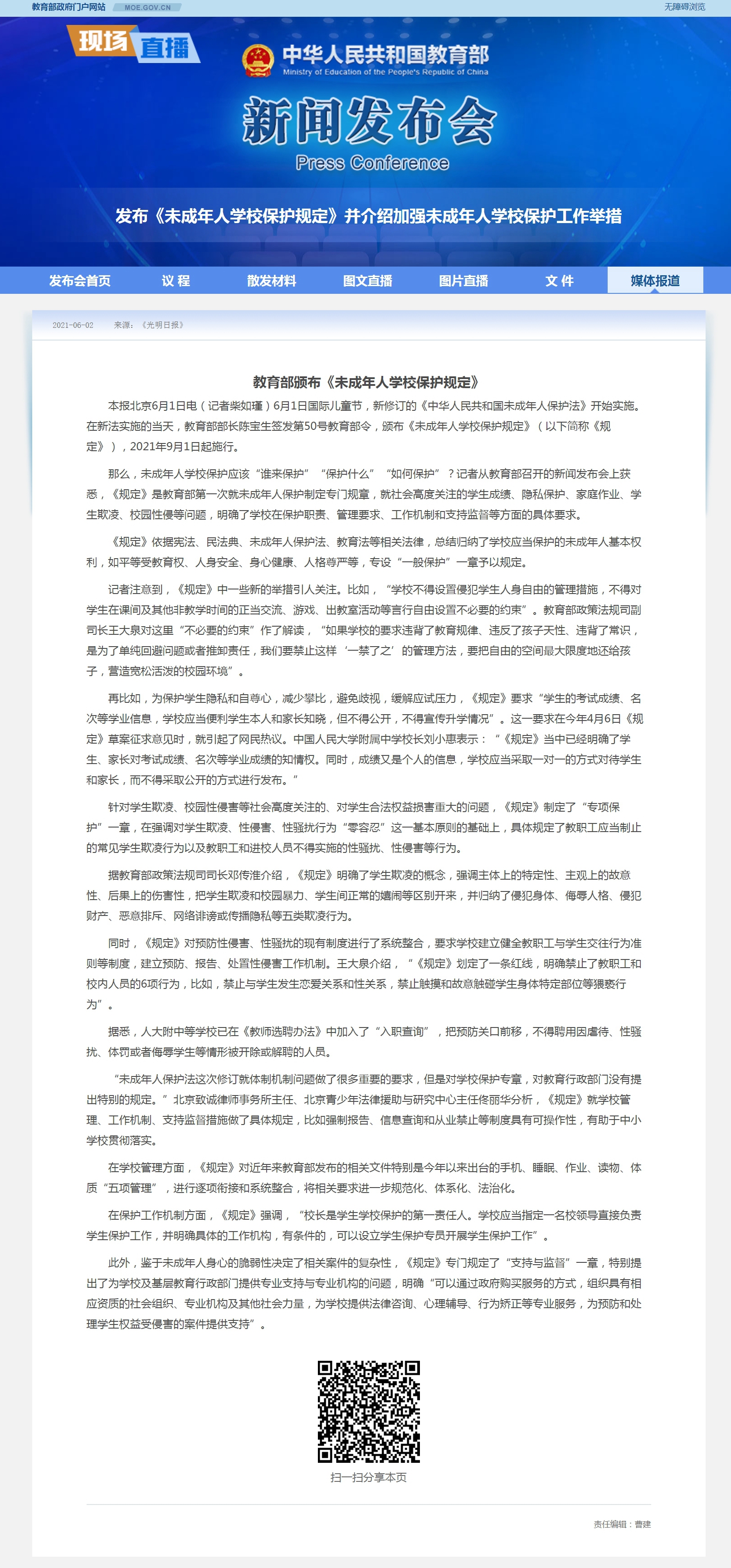 新聞鏈接:http://www.moe.gov.cn/fbh/live/2021/53477/mtbd/202106/t20210603_535374.html