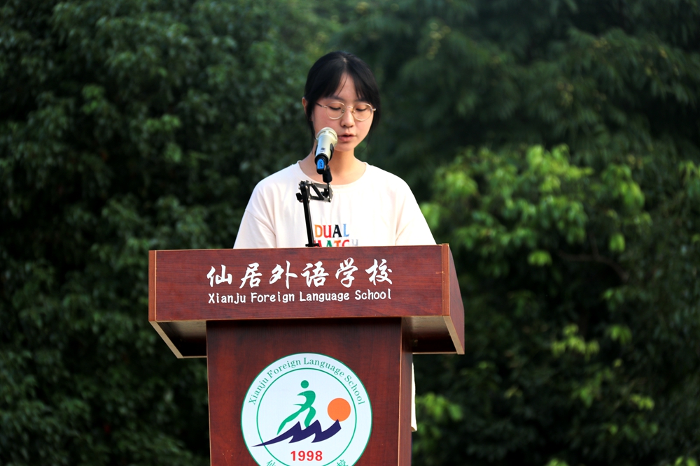 高一(1)班崔夢穎同學代表全體高一同學作表態(tài)發(fā)言。崔同學表達了對未來的學習生活的美好愿望,同時也代表高一同學承諾要嚴格遵守學校的日常行為規(guī)范,自覺地約束自己的行為,養(yǎng)成良好的行為習慣,提高個人素質(zhì),時刻反思自身過失,糾正不良行為習慣,好好學習,三年后給學校、老師、家長一份滿意的答卷。