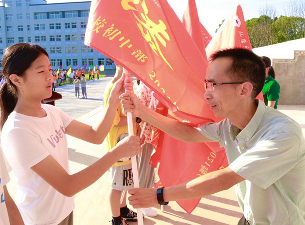 旗幟是團(tuán)隊的象征,也是指引前進(jìn)方向的精神力量。校長們將初一年級的班旗授予了各班的班長。這14面活力四射、寓意深遠(yuǎn)的班旗,凝聚了學(xué)校的殷切期望,它將引導(dǎo)著大家步向追求真理的殿堂。