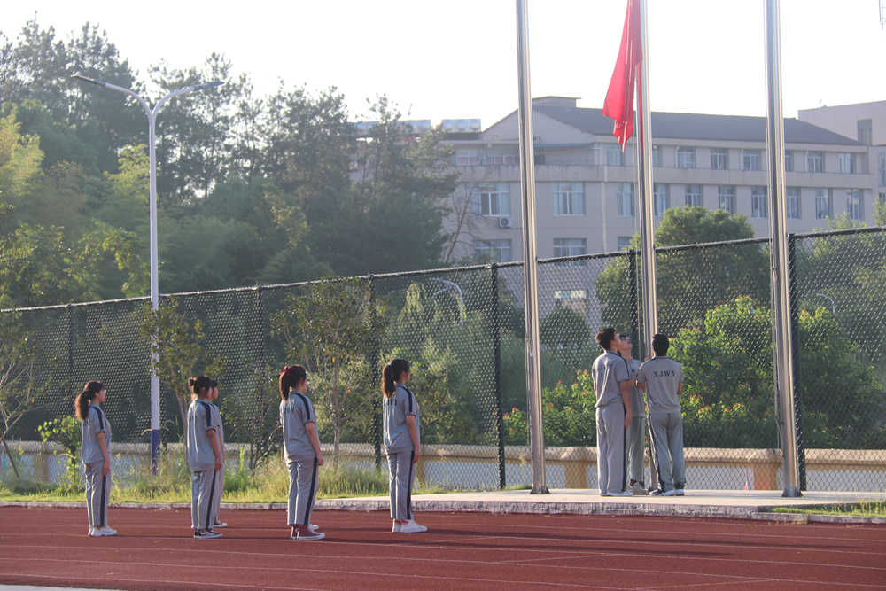 伴隨著雄壯的國歌,鮮艷的五星紅旗冉冉升起,開學(xué)典禮正式開始。紅旗飄揚(yáng),眾目灼灼,閃耀著青春的光輝。