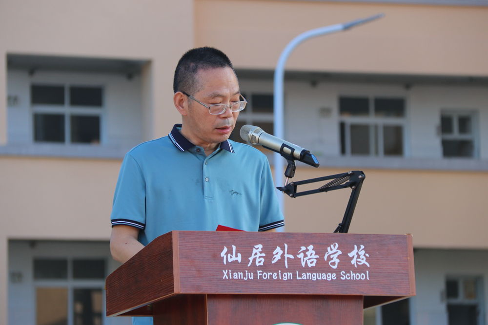9月2日清晨,仙居外語學(xué)校初中部舉行了2021學(xué)年秋季學(xué)期開學(xué)典禮。全校師生相聚操場,以嶄新的姿態(tài)迎接他們?nèi)碌娜松鞒獭1敬伍_學(xué)典禮由九年級的張藏尹和余力成兩位同學(xué)主持。