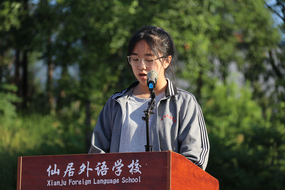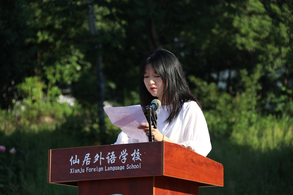 優(yōu)秀學(xué)生代表、高三7班吳玥嶧同學(xué)上臺發(fā)言。作為高三的學(xué)姐,吳同學(xué)吹響了高三進(jìn)軍高考的號角,高考將至,勝利就在眼前。她號召高三同學(xué)們,破釜沉舟,放手一搏,努力為自己的高中生活劃下滿意的句號。同時,她也告訴高一高二的學(xué)弟學(xué)妹高中三年要珍惜時光,腳踏實地,不急不躁,不愧于心。