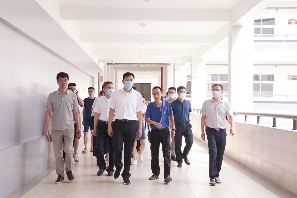 仙外校園網(wǎng)訊 三尺講臺(tái)勤耕耘,桃李芬芳又一年。9月7日上午,在第37個(gè)教師節(jié)來(lái)臨之際,仙居縣委副書(shū)記、縣長(zhǎng)王斌達(dá)一行蒞臨仙居外語(yǔ)學(xué)校初中部新校區(qū),看望慰問(wèn)辛勤工作在教學(xué)崗位上的老師們,并向他們致以節(jié)日的祝福和誠(chéng)摯的問(wèn)候。學(xué)校黨支部書(shū)記周升豪、初中部校長(zhǎng)徐軍勇等陪同慰問(wèn)。
