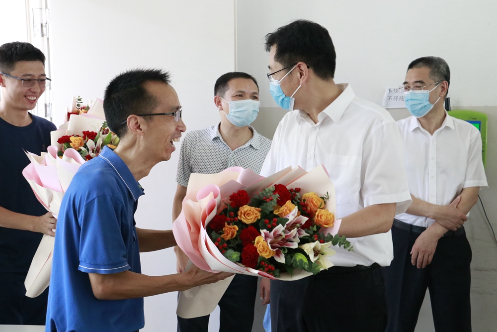 校長(zhǎng)徐軍勇向縣領(lǐng)導(dǎo)介紹了學(xué)校的教育教學(xué)等情況。王斌達(dá)縣長(zhǎng)詳細(xì)了解了學(xué)校校園工作開(kāi)展情況,并與教師們親切交談,向他們獻(xiàn)上了鮮花。他充分肯定了我校教師在平凡崗位上的辛勤耕耘,同時(shí)對(duì)學(xué)校近年來(lái)取得的成績(jī)給予高度評(píng)價(jià)。他勉勵(lì)大家繼續(xù)傳播知識(shí)、傳播思想、傳播真理,努力為仙居教育事業(yè)發(fā)展貢獻(xiàn)自己的力量!