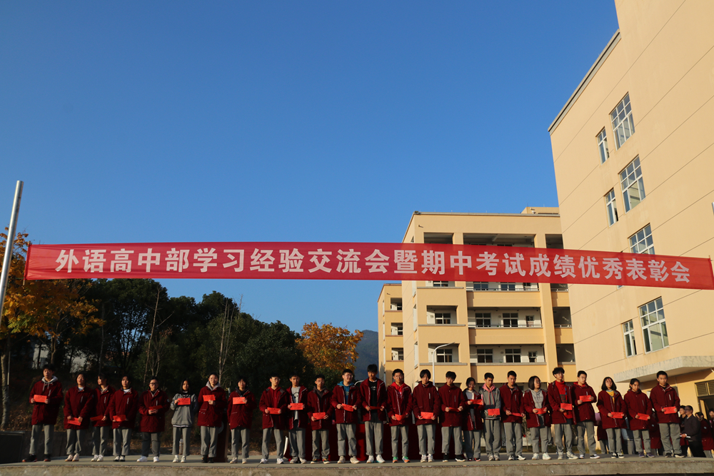 仙外校園網(wǎng)訊(通訊員 王懿) 為鼓勵先進,鼓舞斗志,營造濃厚的學習氛圍,總結(jié)階段教學得與失,12月1日下午,我校高中部召開了“學習經(jīng)驗交流暨期中考成績優(yōu)秀表彰會”。學校校長王志龍、副校長王衛(wèi)明、鄒遠義出席大會,會議由王衛(wèi)明校長主持。會議伊始,鄒遠義校長宣讀了本次期中考試學習標兵、一等獎學金獲獎學生名單,學校領(lǐng)導(dǎo)、各年級段長為獲獎同學頒獎。