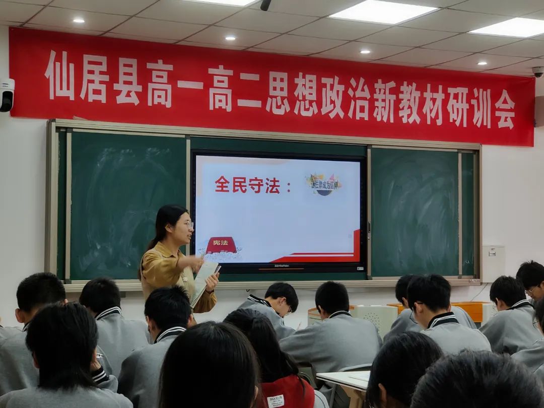 仙外校園網(wǎng)訊(文/胡小桃 圖/鄒遠(yuǎn)義) 3月16日,仙居縣高一高二高中思政新教材研訓(xùn)會(huì)在我校高中部召開(kāi)。本次活動(dòng)主要是幫助高中思政教師進(jìn)一步明晰新課程新教材的思想和體系,準(zhǔn)確把握并落實(shí)新課程理念,提升我縣普通高中思政老師的教育教學(xué)能力。會(huì)議由縣教育教學(xué)研究中心思政教研員王云飛主持。活動(dòng)主要分為兩個(gè)環(huán)節(jié),上午是公開(kāi)課展示,以同課異構(gòu)形式展示新課程標(biāo)準(zhǔn)下教師對(duì)教材的理解和把控,下午是講座交流,內(nèi)容為《法律與生活》《邏輯與思維》兩本教材解讀與分析。
