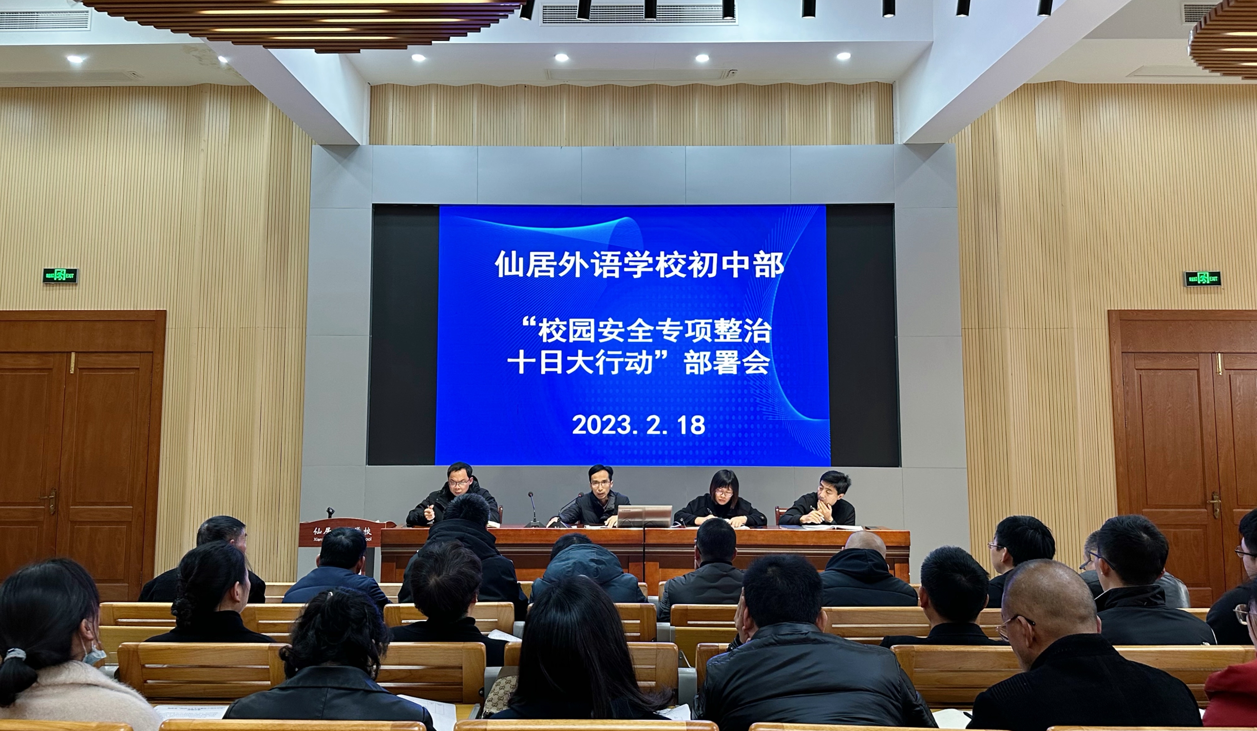 仙外校園網(wǎng)訊(文/吳科穎) 校園安全工作是學(xué)校工作的重中之重。為深入貫徹落實縣教育局關(guān)于校園安全的精神要求,全力做好學(xué)校安全防范工作,堅決防范和遏制學(xué)校安全事故,切實提高政治站位,牢牢守住學(xué)校安全底線。我校初中部聞令而動,2月18日,在階梯教室召開了“校園安全專項整治十日大行動”部署會。