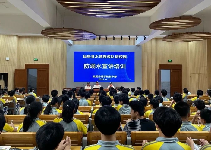為了增加青少年的防溺水安全意識(shí),仙居縣水域搜救隊(duì)再一次走進(jìn)我校初中部,為學(xué)校師生講授防溺水安全知識(shí)。