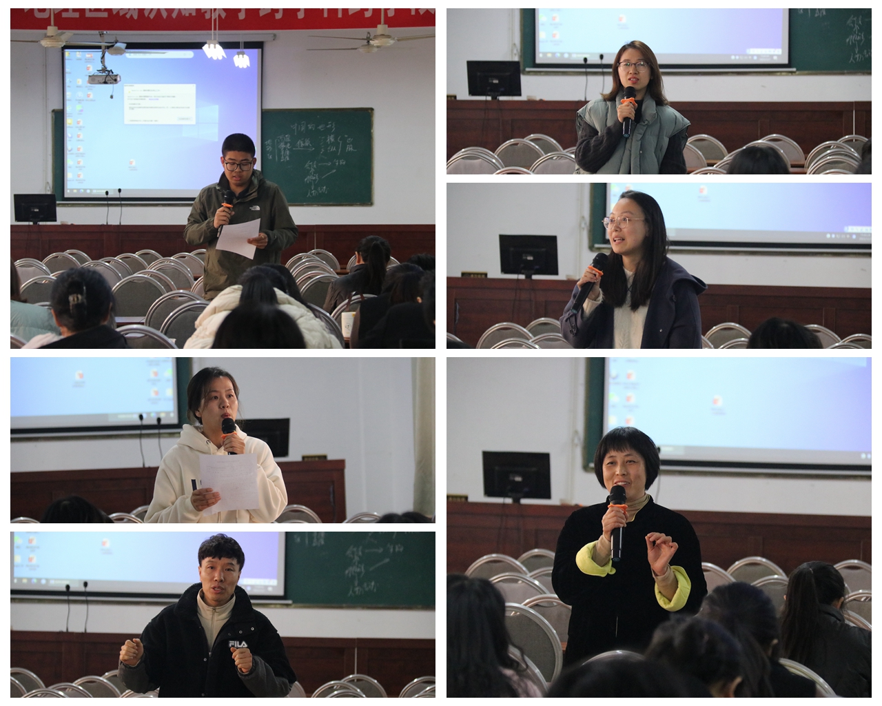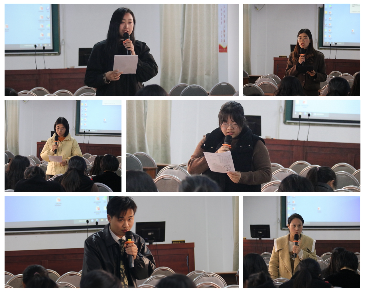 下午,六位授課老師分別進行了說課,分享各自的課堂構(gòu)思與執(zhí)教過程中出現(xiàn)的問題及解決方法。