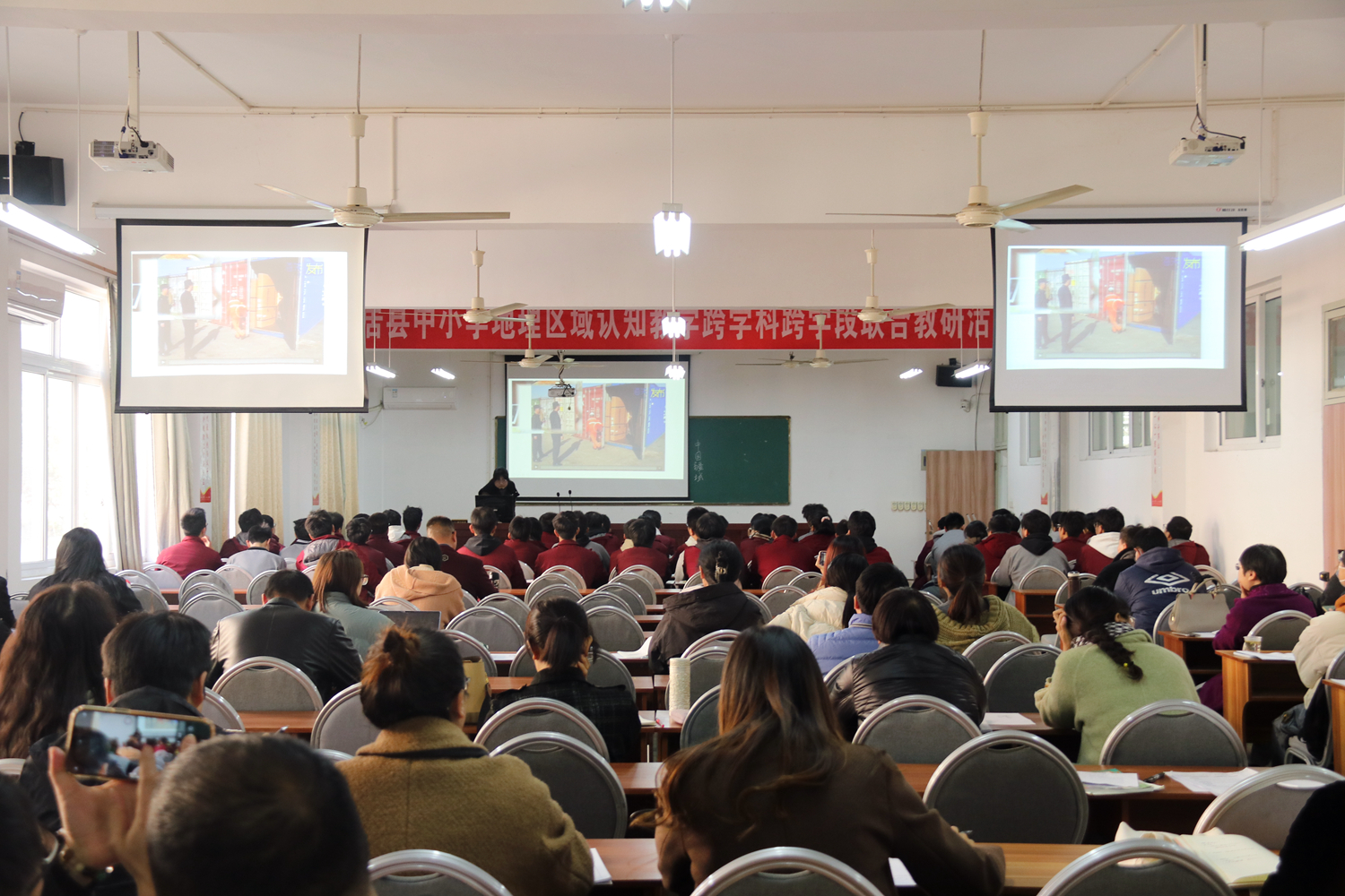 仙外校園網(wǎng)訊(各學部) 為研究新課標新課程背景下地理學科不同學段的課堂教學,搭建各學段間教師交流溝通平臺,使各中小學教師更好地了解地理區(qū)域認知在不同學段的教學要求,12月7日,仙居縣中小學地理區(qū)域認知教學跨學科跨學段聯(lián)合教研活動在我校三個校區(qū)舉行??h教育教學研究中心高中地理教研員王均海和初中歷史與社會教研員顧學會共同主持本次活動,來自全縣各普通高中高一、高二地理、各初中八年級歷史與社會和各小學五年級道德與法治四個學段共有70余位教師參加了此次活動。