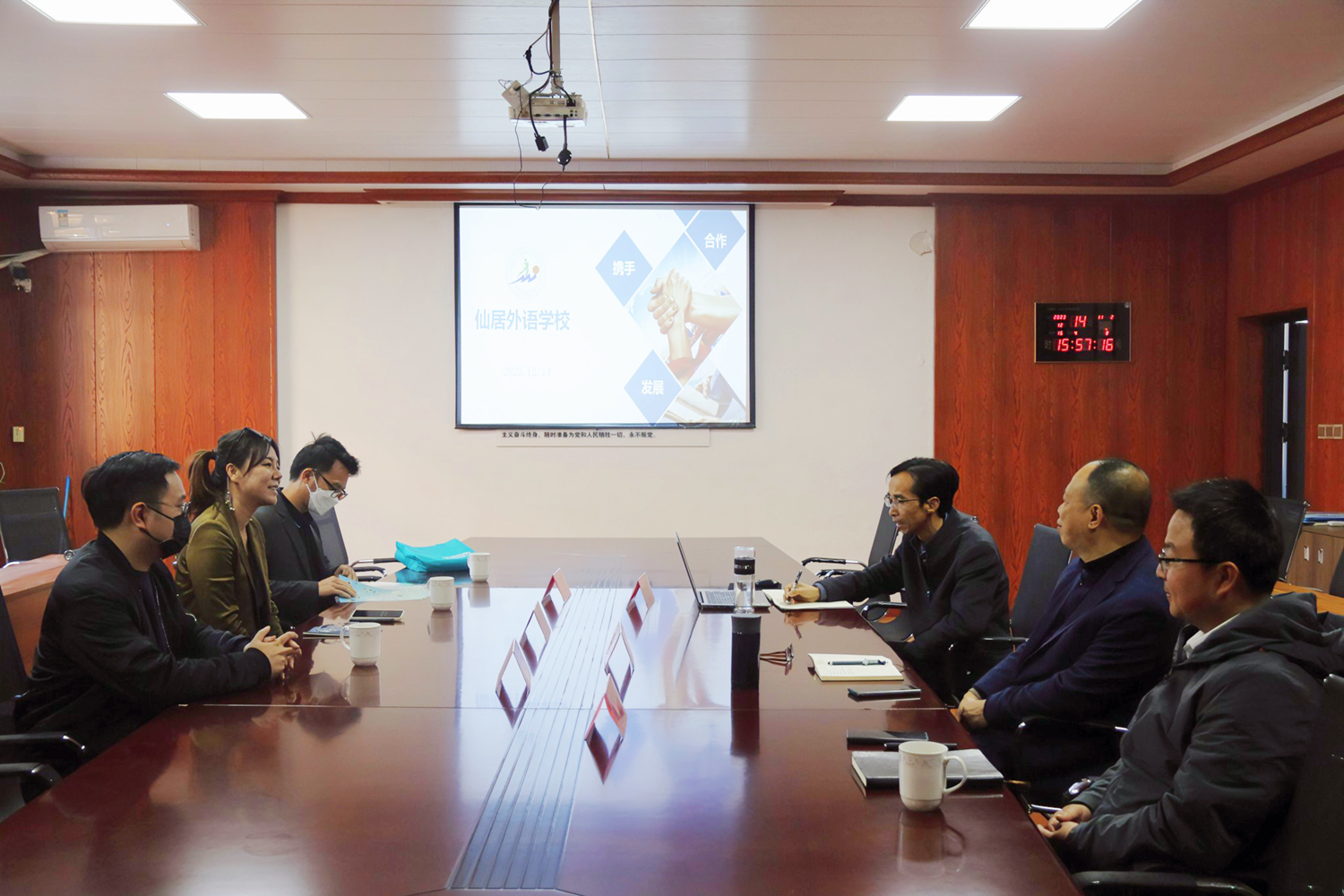 徐軍勇校長簡要介紹了外語學校的建校歷程、師資隊伍、辦學特色、辦學成績、學生發(fā)展以及高中部的發(fā)展現(xiàn)狀等情況,并就圍繞海外升學申請、就讀體驗、職業(yè)發(fā)展等問題進行了具體交流與探討,希望通過雙方深度合作,助力仙外學子的升學深造夢。