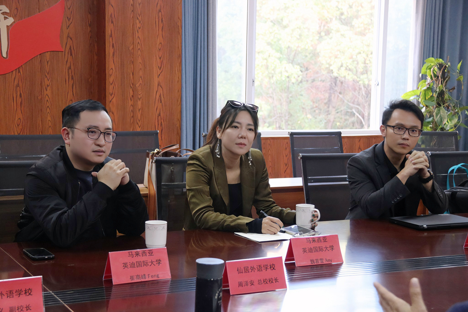 仙外校園網(wǎng)訊(王懿) 為提高人才培養(yǎng)質(zhì)量,加強與國際高校的交流與合作,今天(12月14日)下午,馬來西亞拉曼理工大學代表江家毅Leon、英迪國際大學代表魏若煊Amy、崔高峰Feng等一行三人蒞臨我校高中部訪問并舉行“優(yōu)質(zhì)生源基地”授牌儀式。我校總校校長周澤安、高中部校長徐軍勇、副校長鄒遠義參加會議。