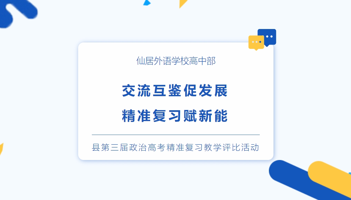 仙外校園網(wǎng)訊(文/夏珊珊) 為加強(qiáng)仙居縣各學(xué)校之間的交流合作,深刻把握精準(zhǔn)復(fù)習(xí)的脈絡(luò),4月22日,仙居縣第三屆高考精準(zhǔn)復(fù)習(xí)(政治)教學(xué)評(píng)比活動(dòng)在我校高中部舉行,縣高中政治教研員王云飛老師全程參與聽課。