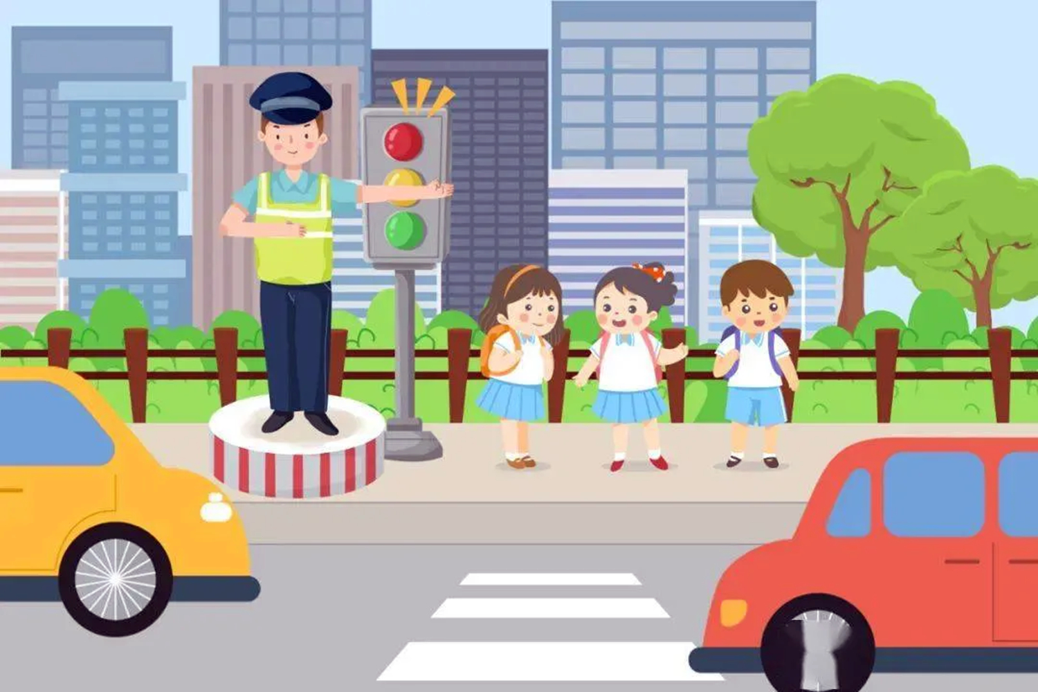自覺遵守交通法規(guī),養(yǎng)成文明出行的良好習慣,過馬路走斑馬線,多觀察路況,不闖紅燈,不翻越隔離欄。未滿12周歲不在公路上騎自行車,未滿16周歲不騎電動自行車。不在公路上、停放車輛周圍或車輛盲區(qū)玩耍打鬧。行走或騎車時不看手機、不聽音樂。不在機動車道騎車,不與機動車爭道搶行。