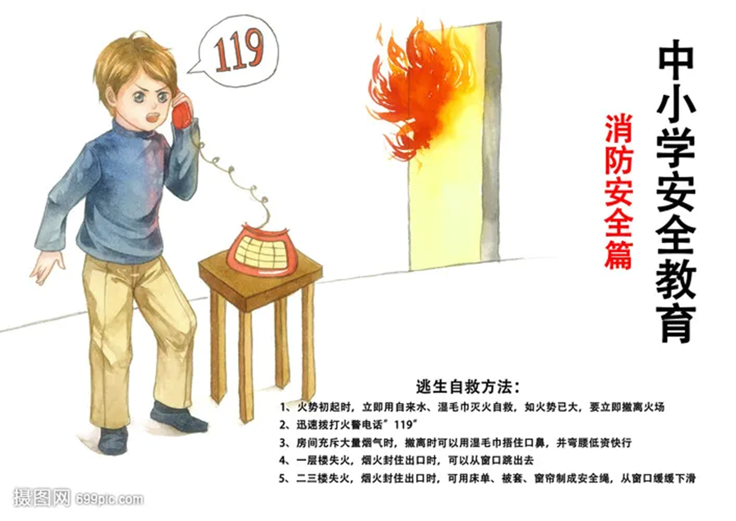 放假在家時,注意防火安全。外出時注意熟悉場所的疏散通道位置和逃生路線,如遇火情有序逃生,不乘坐電梯、不貪戀財物、掌握正確逃生方法。景區(qū)游玩時遵守景區(qū)防火規(guī)定,不攜帶火種進入山林,不在野外點燃火種。發(fā)現火情及時報警或報告大人,牢記各種報警和急救電話,遇到緊急情況時及時求助。
