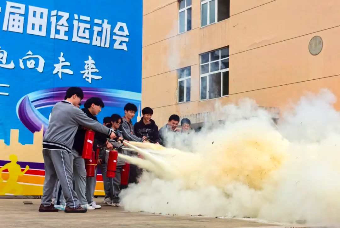 到達操場后,羅毅老師向師生們詳細介紹了滅火器、消火栓等消防器材的使用方法,并現(xiàn)場進行了演示。在羅老師的指導下,部分學生親自體驗了滅火器的使用,切實掌握了滅火技能。