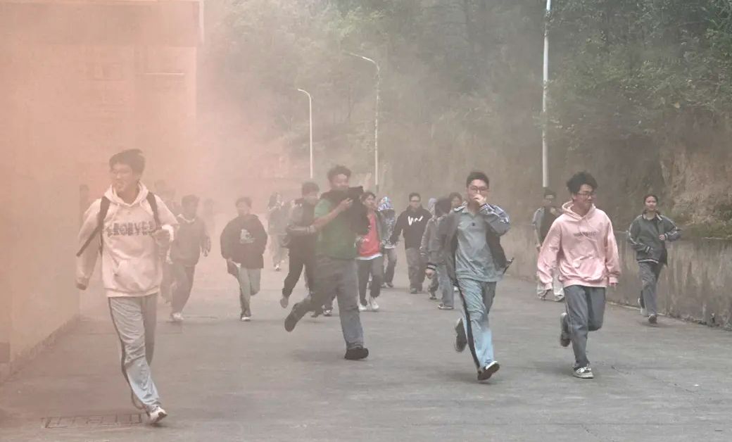 下午4:00, 警報響起,險情發(fā)生。同學們在老師的組織下,迅速用手捂住口鼻,彎腰低姿,沿著預定的疏散路線,快速、有序地撤離到學校操場的安全地帶。整個疏散演練過程秩序井然,無一學生遺留教室,無一學生出現(xiàn)傷情。