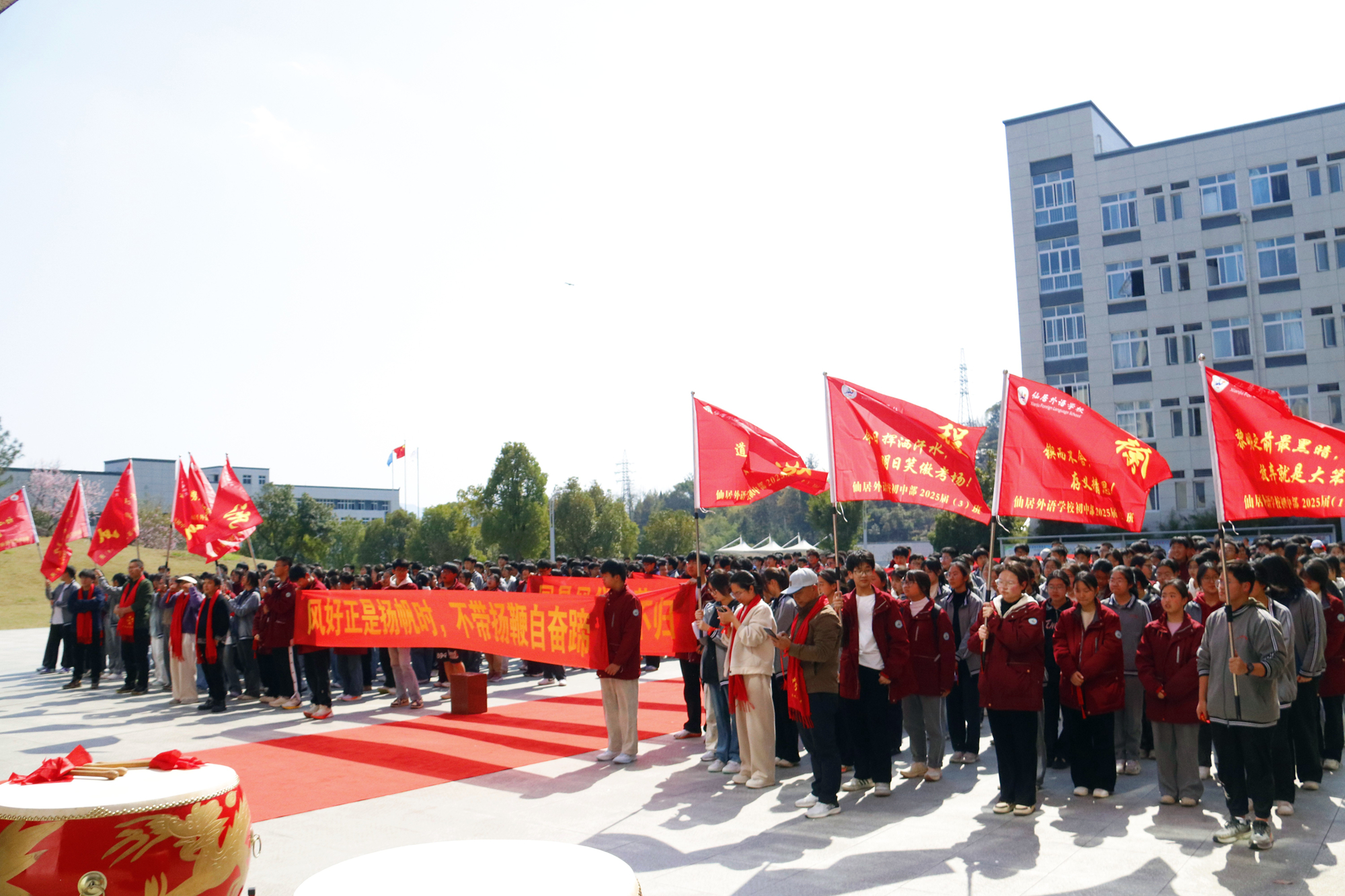 仙外校園網(wǎng)訊 春雷動(dòng),戰(zhàn)鼓擂!3月18日下午,我校初三年級(jí)全體師生齊聚小廣場(chǎng),以一場(chǎng)熱血激昂的“百日誓師大會(huì)”正式吹響中考沖刺的號(hào)角。隨后,師生攜手攀登西站山,用腳步丈量堅(jiān)持,以行動(dòng)踐行誓言,為青春留下濃墨重彩的一筆! 誓師大會(huì):斗志昂揚(yáng),誓言鏗鏘 下午1:40,初三年級(jí)學(xué)子佩戴勵(lì)志紅絲帶,以整齊劃一的隊(duì)列昂首入場(chǎng)。在震天的鼓聲中,校領(lǐng)導(dǎo)們?yōu)楦靼喟嘀魅问谟钁?zhàn)旗,班主任們鄭重將旗幟轉(zhuǎn)交給自己班的班長(zhǎng),旗幟隨風(fēng)飄揚(yáng),點(diǎn)燃全場(chǎng)斗志! 教學(xué)副校長(zhǎng)徐超燕登臺(tái)致辭,勉勵(lì)學(xué)子:“百日雖短,但足以書寫奇跡。愿你們以信念為盾,以拼搏為劍,不負(fù)韶華,頂峰相見!” 隨后,初三七班吳奕穎同學(xué)帶領(lǐng)全體學(xué)生莊嚴(yán)宣誓:“百日奮戰(zhàn),全力以赴!青春無悔,誓創(chuàng)輝煌!”鏗鏘誓言回蕩校園,彰顯必勝?zèng)Q心。 隨后李朝輝政教副校長(zhǎng)強(qiáng)調(diào)了活動(dòng)紀(jì)律和要求,希望每一個(gè)同學(xué)樹立強(qiáng)烈的安全、環(huán)保意識(shí),聽從指揮,有序前行。同時(shí)鼓勵(lì)同學(xué)們?cè)诖舜位顒?dòng)中用互幫互助的團(tuán)隊(duì)精神詮釋集體主義內(nèi)涵,以堅(jiān)韌不拔的頑強(qiáng)意志書寫青春成長(zhǎng)答卷,彰顯仙外學(xué)子自信陽光、積極向上的良好風(fēng)貌。 登山勵(lì)志:步履堅(jiān)定,許愿未來 下午2:00,鼓聲再起!各班班主任與任課老師帶隊(duì)出發(fā),師生同行,從北大門踏上西姑山征程。登山途中,大家相互扶持,歡笑前行,用汗水詮釋“堅(jiān)持”的意義。抵達(dá)山頂后,班主任為每位學(xué)生發(fā)放許愿牌。同學(xué)們寫下目標(biāo)與愿景,或掛于山間樹梢,或帶回教室珍藏。一張張?jiān)S愿牌隨風(fēng)輕舞,承載著對(duì)未來的期許,也化作百日沖刺的動(dòng)力源泉。 凱旋歸來:步履不停,追光前行 下午4:00,全體師生平安返校,各班在教室開展激勵(lì)教育。班主任以暖心話語總結(jié)活動(dòng),鼓勵(lì)學(xué)子將登山中的毅力與團(tuán)結(jié)延續(xù)到學(xué)習(xí)中,以最佳狀態(tài)迎接中考挑戰(zhàn)。 百日誓師,是號(hào)角,更是承諾 碌碌人生,卻綻放出絢爛光耀。莘莘學(xué)子,視考場(chǎng)如戰(zhàn)場(chǎng),不求安閑,與星輝為友,與長(zhǎng)夜相隨,不到最后一刻永不放棄。縱百日光陰稍縱即逝,但奮斗的足跡終將銘刻青春。愿仙外學(xué)子以今日為起點(diǎn),執(zhí)筆為刃,披荊斬棘,在六月舞金戈,展鋒芒,收獲屬于自己的璀璨榮光! 仙居外語學(xué)校,與你并肩,共赴山海!
